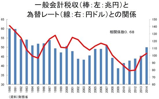 円安は経済成長に寄与するので、実は税収にも大きく貢献する。これを示すのが下図だ。