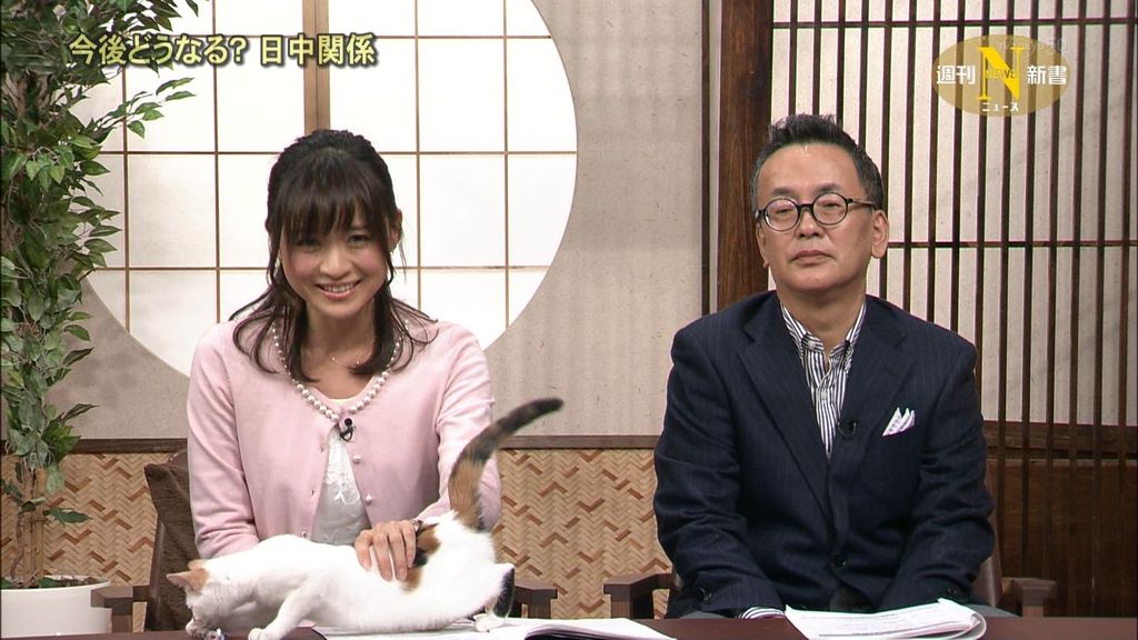 ホスト役のジャーナリストで愛猫家の田勢康弘氏(70)が番組冒頭「生後4カ月、メスです」と紹介した。この日のテーマは「笑顔なき握手…日中首脳会談を読み解く」。「にゃーにゃ」はテレビ初出演にもかかわらず、ゲスト・富坂聰氏(拓殖大学教授)宋文洲氏(ソフトブレーン創業者)の前で寝そべるなど、自由気ままに動き回り、早くも度胸満点の“大物ぶり”を発揮。田勢氏も「大物ですね。やっぱり雑種の強さがある」と評した。