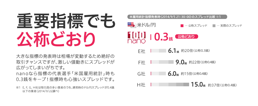 他社と比べて値幅が狭くて使えない会社。約定直前で切り上がったのでgmoのレートと比べたら2pips以上違ってた。