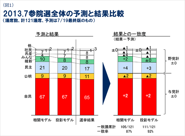 ビッグデータレポートチームでは、2013年7月21日に投開票が行われた第23回参院選の議席数予測を行いました。その結果、92%という高い的中率を得ることができ、多くの方からたくさんの声をお寄せいただきました。