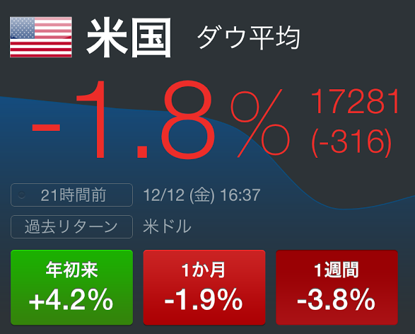 ダウ工業株30種平均は前日比315ドル51セント(1.8%)安の1万7280ドル83セントと10月30日以来ほぼ1カ月半ぶりの安値で終えた。下げ幅は10月9日以来ほぼ2カ月ぶりの大きさ。