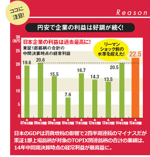 ■強気派はこう見る!日本企業は過去最高益を達成し日経平均は15年ぶりの2万円台へ!