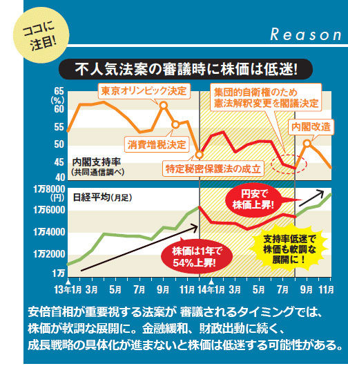 第一生命経済研究所の嶌峰義清さんは「米国を中心とした世界経済の回復が明確になり、円安進展と輸出回復が株価上昇の牽引役となる」と見ている。さらに、業績を押し上げる要因として、「原油価格下落や消費増税のマイナス効果剥落、政府の追加景気対策などで国内景気が回復に転じる」(楽天証券の窪田真之さん)という点も見逃せない。