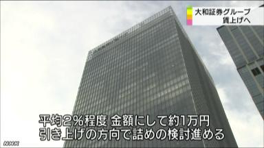 関係者によりますと、大和証券グループは、堅調な業績が続いていることから社員の待遇改善を図ろうと、来年度から月給を引き上げる方針を固めました。
