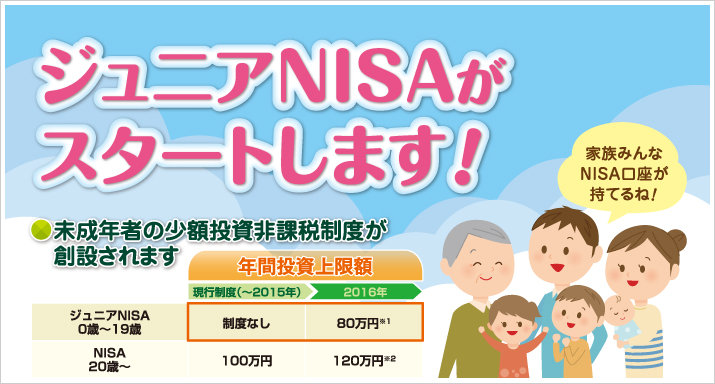 資産運用会社の野村アセットマネジメントは、来年から始まる0~19歳専用の「ジュニアNISA」の口座数が、来年1年間で約150万に達するとの見通しを発表した。未成年者(約2200万人)の約7%に相当するという。