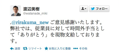 「弊社では、時間外手当として「ありがとう」を現物支給しております」