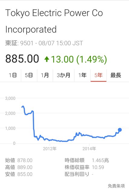 汚染水テロ企業クズ東電の株wwwwwwwwwwwwwwwwwww