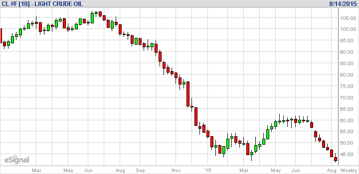 これを象徴するワードが、冒頭で紹介した「lower for longer(より長期にわたる価格低下)」となる訳だ。8月13日のNYMEX原油先物相場は3月17日の安値42.63ドルを下抜き、年初来安値を更新した。これは2009年3月4日以来の安値である。なお原油価格は下値切り下げ傾向を維持していることが再確認されたが、その先にあるのはリーマンショック後の最安値である33.55ドルになる。