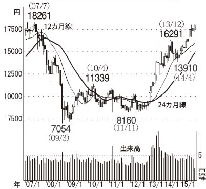 もっとも、このアベノミクス相場を長期波動から俯瞰(ふかん)すると、二つの大きなヤマに分かれる。12年11月中旬~13年12月末の1万6,291円までが反騰第1波。その後、14年4月の1万3,910円まで調整をいれたが、10月末の追加緩和をバネに反騰第2波を形成し、現在に至っている。