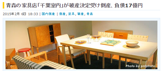 青森の家具店「千葉室内」が破産決定受け倒産、負債17億円