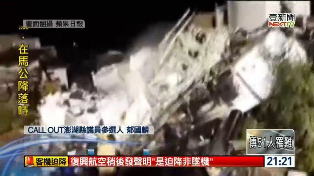 台湾でも旅客機が墜落し50人以上が死傷。原因は株式市場が休場になるほどの台風か。