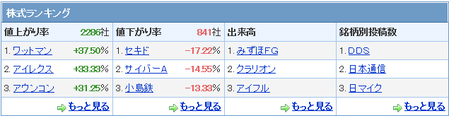 ランキングで値上がりランキング一位の株を買えば上がって儲かります