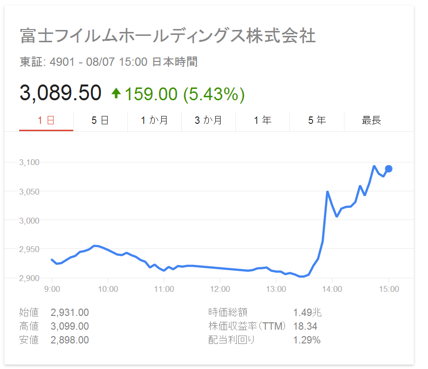 富士フィルムがTOB掛ける時に株価がすっとんでデイトレのおもちゃになったから