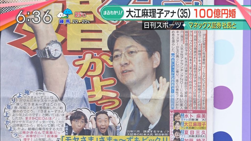 MONEX社長(年収3億円超)と結婚した大江アナ。「結局カネかよ!」との批判が集中し株が下がる。