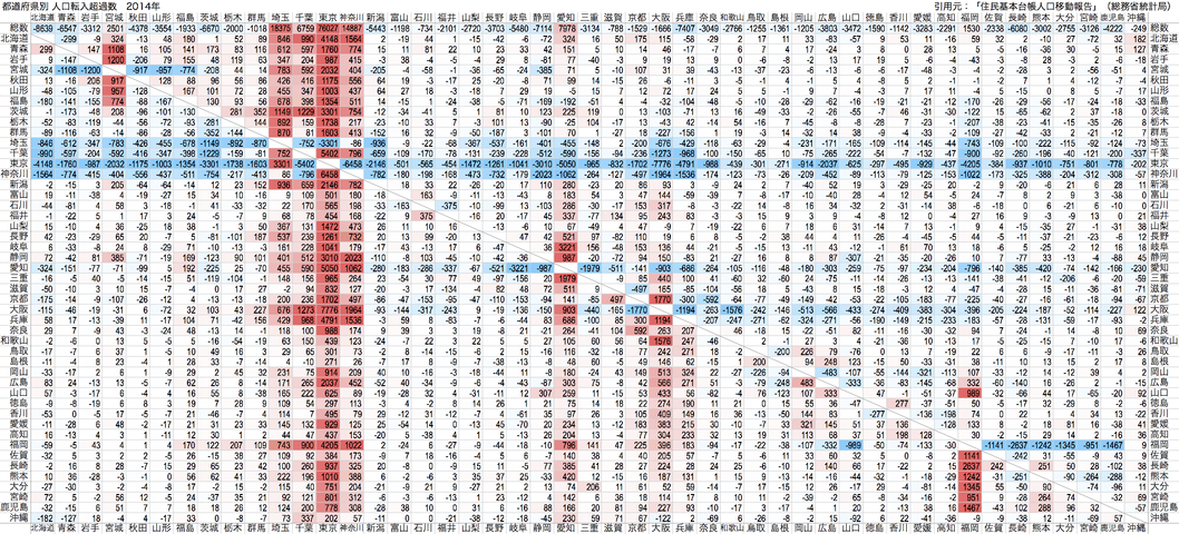 神奈川 14,887  富山県 -1,198  高知県 -2,291  岩手県 -3,312  青森県 -6,547