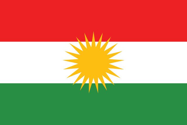 クルディスタンの旗。現在はイラク領クルディスタン地域の旗。