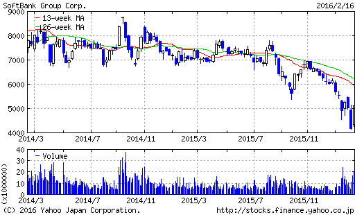 しばらくソフトバンクの株価は見てなかったけど、結構下げてたんだね。