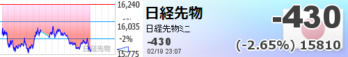 19日午前の東京株式市場で日経平均株価は反落し、前日比360円57銭(2.23%)安の1万5836円23銭で前引けを迎えた。