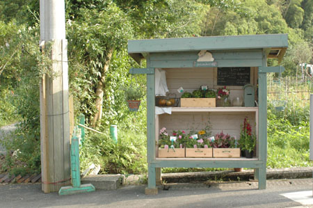 家庭菜園の余りを無人販売に置く