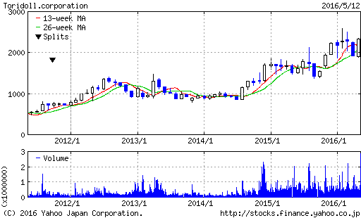トリドールの2016年3月期決算は、売上高955億8700万円(前年同期比9.5%増)、営業利益87億3300万円(109.2%増)、税引前利益81億1700万円(124.6%増)、当期利益52億4200万円(160.7%増)となった。