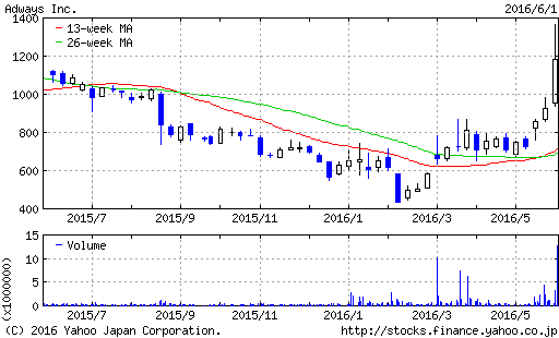 LINE関連のアドウェイズ、株価ぶっ飛んでんでな。