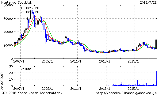 25日の東京株式市場で任天堂株が急反落し、前週末比で一時下落率は17%超、4990円安とストップ安寸前まで売られた。スマートフォン用ゲーム「ポケモンGO」の日本での配信が22日に始まったが、同日夜に任天堂自身が「業績への影響は限定的」と発表したことが影響した。