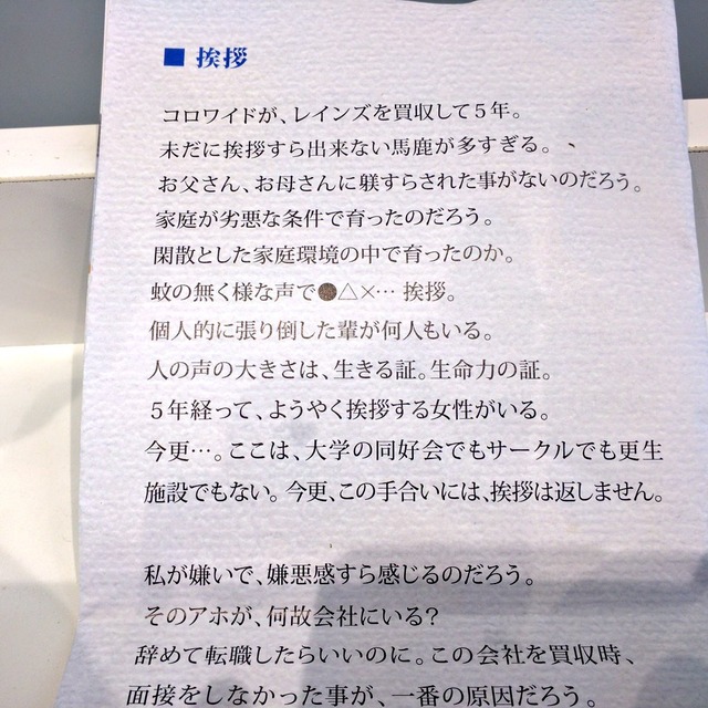 【怖い】コロワイド(牛角や温野菜経営)の会長さん、買収した企業の社内報で「挨拶出来ない馬鹿ばかり」「親に躾けされてない」「生殺与奪は、私が握っている」などと暴言。