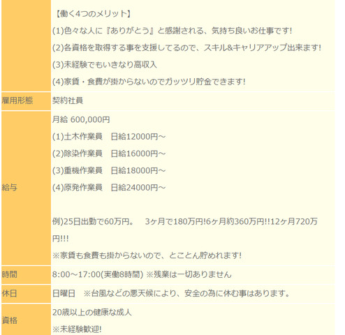 月給60万円で残業一切なし家賃や食費もかからないホワイト職場の求人が凄い