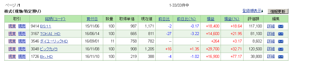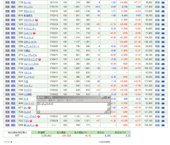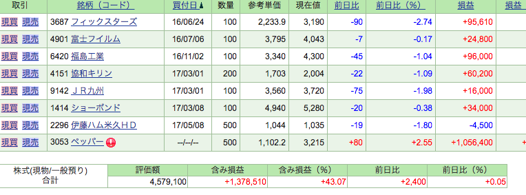 長く持ってる銘柄で1年半ぐらいだった。割とぐるぐる回してたわ