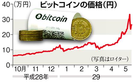インターネット上の仮想通貨「ビットコイン」の値動きが激しくなっている。5月下旬に1ビットコイン当たりの価格が34万円を超え過去最高を記録したが、その後急落している。価格は今後も上昇する可能性があり、バブルを懸念する声も出ている。