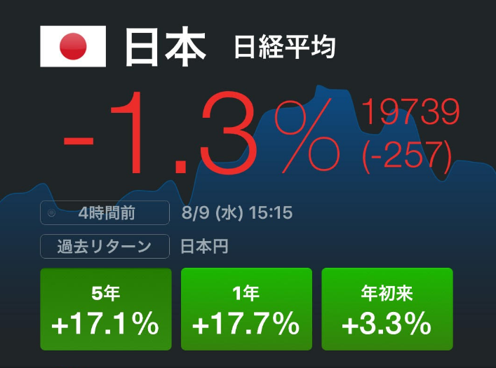 日経平均の終値は1万9738円71銭(257円30銭安)、TOPIXは1617.90ポイント(17.42ポイント安)、出来高概算(東証1部)は20億6631万株