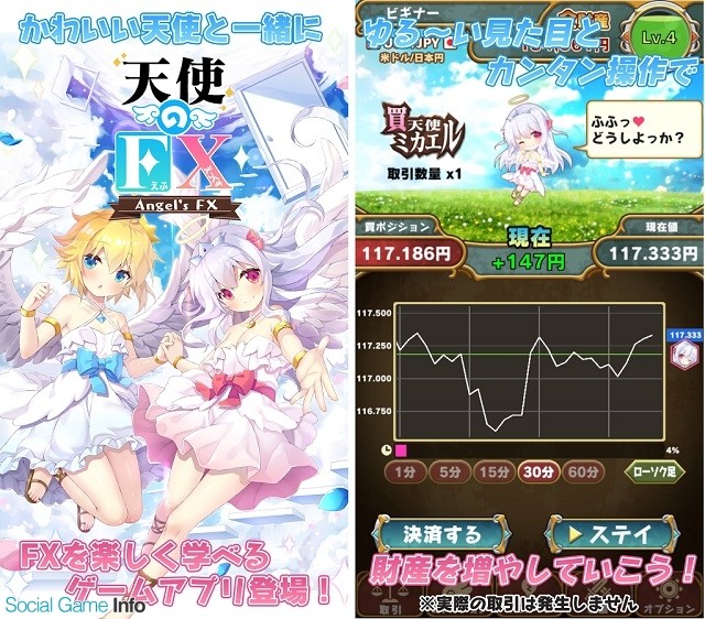 1: 2017/08/20(日) 15:56:35.97 ID:Jj9ufx1C0.net外為どっとコム総合研究所は、本日(8月14日)、FX(外国為替保証金取引)がより楽しく体験できるスマートフォン向けゲームアプリ『天使の FX』をリリースした。