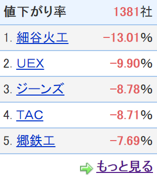 ちょっと前に株で9万円稼いだ投資家がコツを公開。暴落時に東証一部値下がり率ランキングを見て投資先を決める手法らしい。