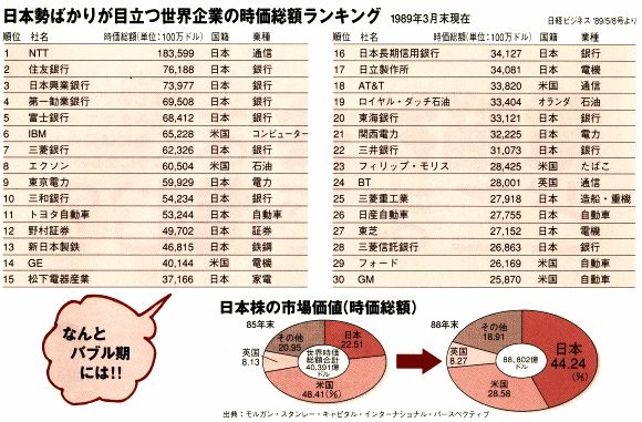 東海銀行がAT&Tやロイヤルダッチと同等の時価総額って、異常な時代でしたわ