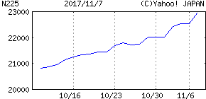 前場の東京株式市場で、日経平均株価は前営業日比185円33銭高の2万2733円68銭となり、4日続伸した。世界的な株高を背景に一段高となり、1996年6月26日の取引時間中高値2万2750円70銭を一時上回った。