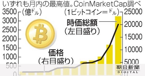 「ビットコイン」など仮想通貨の急激な値上がりを受け、国税当局は多額の売却益を得た投資家らの調査を始めた。数千万~数億円の利益を得た投資家らをリストアップ。