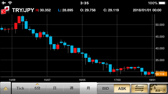 トルコリラ/円を全力ロングで蔵がたつ