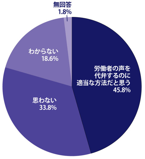 アンケートでは春闘で賃上げ交渉をすることの効果についても聞いた。「適当な方法」とする回答が「適当でない」を上回った。