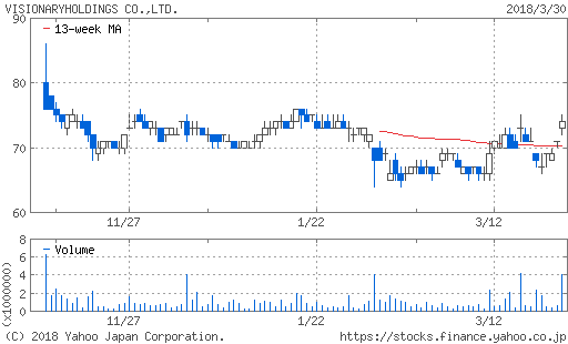 69円で昨日買っておいた眼鏡屋の株も今日は70円にアップしている