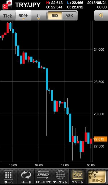 改めて見ると今日1日でトルコ円1円以上下げてるのか