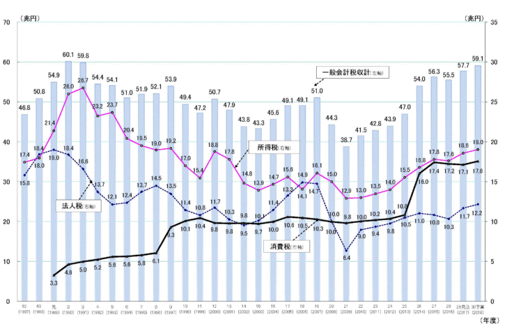 下げずに、税率維持してたら60兆円超えてただろ。