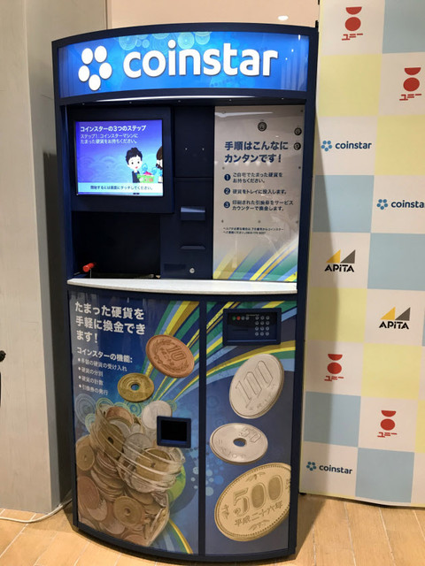 両替機を設置するのはいずれも横浜市で「アピタテラス横浜綱島」「アピタ長津田店」「アピタ戸塚店」の3店舗。両替機に硬貨を入れると、1分間で600枚の速度で枚数や金額を算出する。画面に表示された小銭の金額を確認すると引換券が発行され、サービスカウンターに持って行けば紙幣と交換できる。