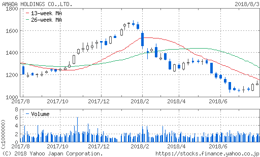 アマダの株を1060円で一万株買った。