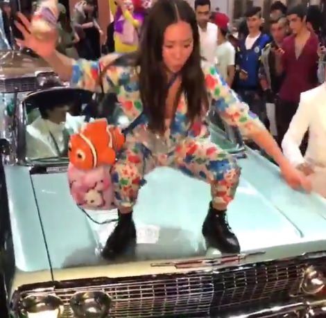 調子に乗って人様の車のボンネットに上がった女がビターンされた図?w