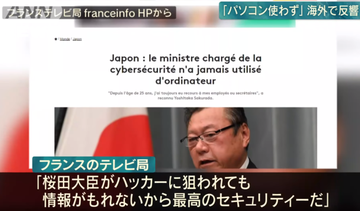 「驚く」「不可解」といった声が多いが、PCを触ったことがない桜田氏を「システムエラー」「ある種の最強のセキュリティーだ」と皮肉る声も相次いでいる。海外主要紙が相次いで取り上げるなど、「大人気」ともいえる状況だ。
