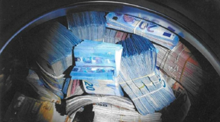 現金のほか携帯電話や銃器類、現金計算機も押収した。容疑者の名前は公表していない。 警察が公開した写真には20ユーロ札や50ユーロ札の束が洗濯機に詰め込まれている様子が写っている。