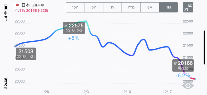 日経平均先物で2万割れ(19868)とるやないかい、ブラックXマス確定!