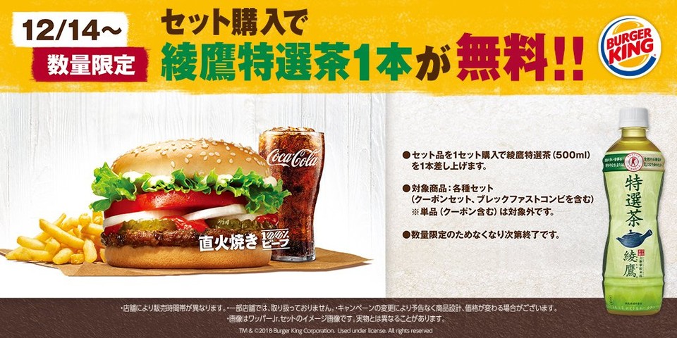 今ならポテトとドリンク無料におまけで綾鷹1本ついてくるで