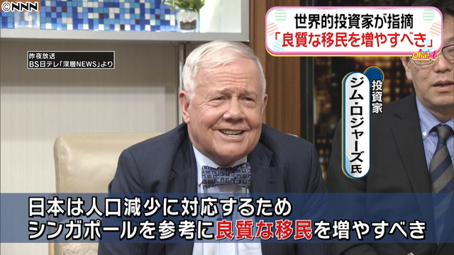ロジャーズ氏はこのように述べた上で、日本は人口減少に対応するため、シンガポールを参考に良質な移民を増やすべきだと指摘した。また、投資で成功する秘訣(ひけつ)については、自分がよく知っている分野に投資することだと強調した。