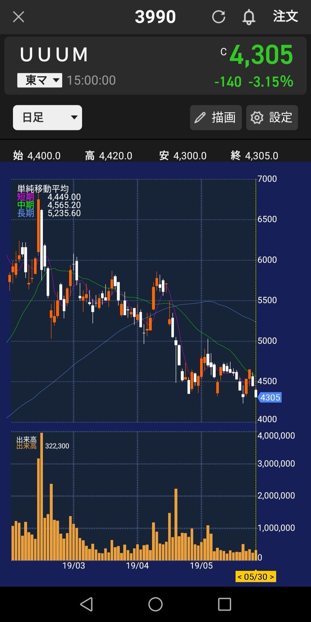 一時飛ぶ鳥を落とす勢いで上昇していたUUUM株さん、いつのまに株価がダダ下がりw